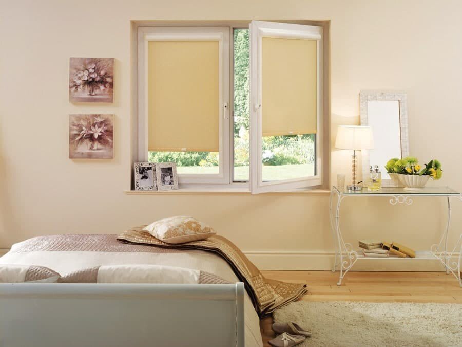 - Удобство. В открытом положении ткань полностью скрыта, а благодаря направляющим не провисает и остается ровной даже при открывании окна на проветривание.